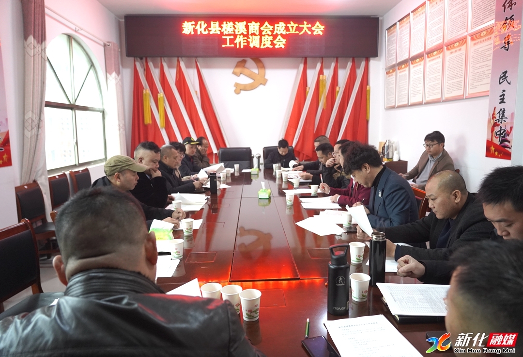 新化新闻网讯(通讯员 谢莎莎)12月24日,槎溪商会成立工作调度会召开,推进商会成立前期筹备工作。槎溪镇党委书记袁宏,长沙市新化商会秘书长、槎溪商会筹委会主任胡志新参加。