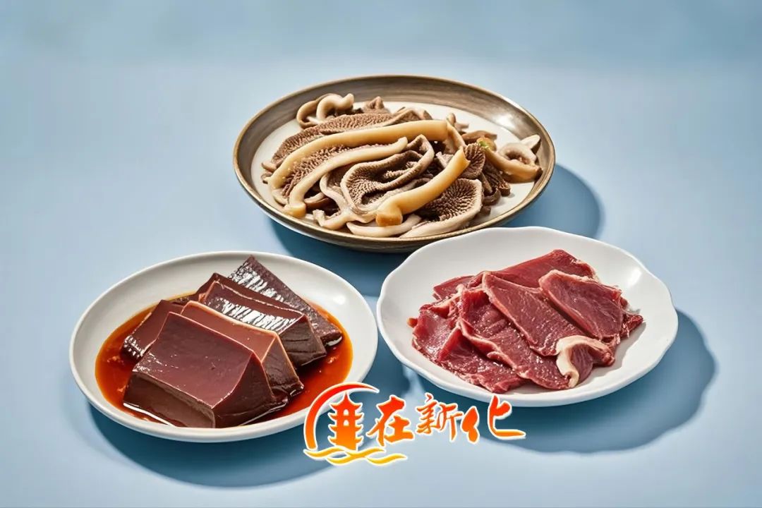 梅山的土地,向来不吝啬对子民的馈赠。清晨现宰的黄牛,带着体温的牛血在半凝固时被利刃划作两指宽的薄片,这是三合汤的“血性”;刚从牛肚取出的毛肚,黑膜未褪时便以山泉水轻涤,保留着草木清香的“甘脆”;带筋腱的牛肉需逆纹切作铜钱厚,在辣味的浸润中淬炼出绵密的“柔韧”。三种食材,对应天、地、人三才之道,暗合梅山文化对自然万物的敬畏。